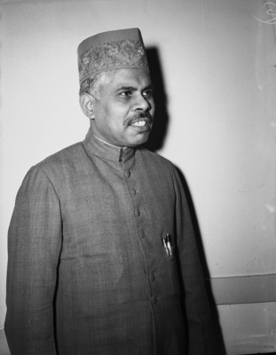 Attending the Christian Church Ministers' Institute is Reverend (Rev.) Samuel Masih. He is from Balispur, India. He is shown standing against a bare wall, dressed in a fez hat and a button-up shirt. Published in the Fort Worth Star-Telegram morning edition, February 13, 1940.