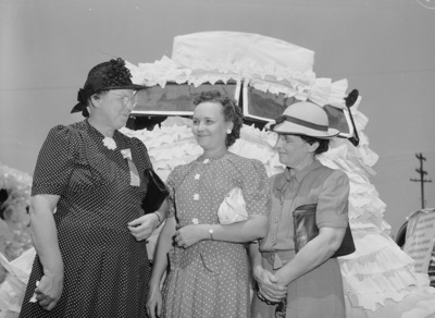Johnson County Pioneers and Old Settlers Reunion. Left to right, Mrs. T. S. Senter, Mrs. Clarence Mahanay and Mrs. J. M. Mallioote Senior, all of Alvarado, Texas. Published on August 7, 1941.