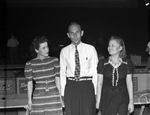 Lucille Harrell, Leo M. Kuehn, secretary of Olney Chamber of Commerce, and his secretary, Frances Hendricks. They are standing next to each other. Young County citizens joined with Olney Friday night in playing host to the oil operators of that area at a barbecue held on the Olney High School football field. Published in Fort Worth Star-Telegram, morning edition, August 10, 1941.