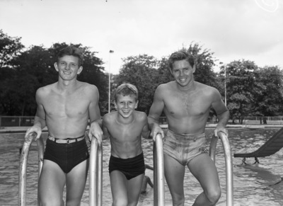 Swimmers. Left to right, Phil Griffin, Henry Flenner and Bob Cowling.