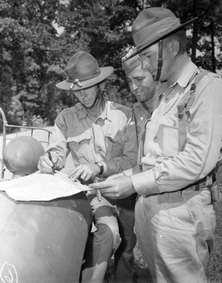 Levy, D. E. (Lt.); Scott, James (Lt.); Military personnel; Military uniforms; Maps; Cigars; Military life; Military maneuvers; Miles, W. J. (Capt.)