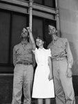 Miss Gene Gorman is taking two soldiers from Camp Wolters on a sightseeing tour of downtown Fort Worth, Texas. The soldiers, left to right, are Private George Bouchey and Private Harry A. Baij. Both men are natives of Michigan. Miss Gorman is shown pointing out one the taller buildings. She is wearing an American Red Cross uniform. The soldiers are dressed in military uniforms. The tour is being sponsored by the Motor Corps of the American Red Cross. The girls of the corps are serving as chauffeurs and guides.