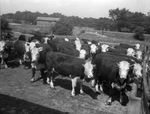 Beeves finished for market by Bert Short and Sons, of Archbold, Ohio, after they had been fed by Charles Featherston, of Wichita Falls, Texas, who purchased them as calves. These Texas cattle were observed by the Chuck Wagon Gossiper when he made a tour of Corn Belt feedlots. The cattle are standing in a fenced-in area of the feedlot.