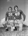 Marcell Harrison (38) and Odell Harrison (48) are two new players in the Texas Wesleyan Rams' college football team. They are fine defensive players and look to sparkle with the Rams this season. The Harrison twins are natives of Temple, Texas and transfers from Texas Christian University where they played two seasons. Marcell will play end while Odell will be a blocking back. "(Star-Telegram Photo.)" Published Star-Telegram Eve. Sep. 15, 1941.