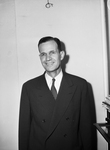 J. M. Star Williams, the new Tarrant County, Texas auditor, as he entered his new office for the first time. He is wearing a suit. Printed on the door to the office is the word "Auditor." Published in the Fort Worth Star-Telegram Morning edition September 7 1941.