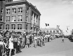 Image shows a crowd looking upon a parade at the fourth annual Johnson County Fair in Cleburne. Published in the Fort Worth Star-Telegram evening edition September 11, 1941.