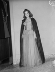Westbrook, Louise (Miss); Models; Modeling; Fashion; Fashion shows; Fair Store Style Show; Evening gowns; Capes; Formal Fashion; Earrings; Closets