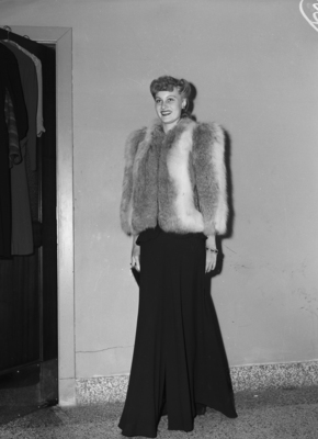 Haney, Forrestine (Miss); Fair Store Style Show; Models; Modeling; Fashion; Fashion shows; Formal Fashion; Evening gowns; Fur coats; Bracelets; Closets