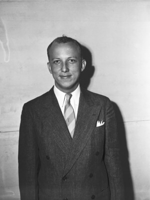 Reverend George C. Farmer, new minister of the Polytechnic Christian Church. He is wearing a suit and standing against a wall. Published in the Fort Worth Star-Telegram evening edition, September 20, 1941.