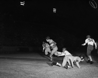 Wright, Ed; Paschal High schools; Paschal Panthers; Electra Tigers; Football; Football players; Football Uniforms; Helmets; Football Fields; Farrington Field (Fort Worth, Tex.); Dillard; Tommy; Leather helmets; Stadium lights