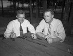The Methodist annual picnic was held just west of the Lake Worth Casino, September 18, Thursday. Reverend W. F. Smith, left and Reverend J. Fred Patterson of Mansfield, sit down to play dominoes after the other strenuous games were over. Published in the Fort Worth Star-Telegram morning edition, September 19, 1941.