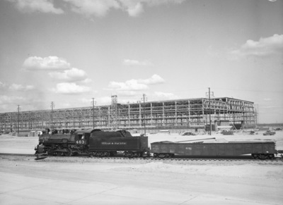 A trainload of heavy steel for Lake Worth Bomber Plant.