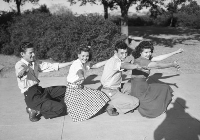 Shown here are Polytechnic High School yell leaders are (left to right) Bobby Rhodes, Virginia Duease, Charles Greer and Elise Shannon.