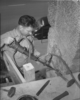 Tarrant County Courthouse, C.H. Suber working with an electric drill