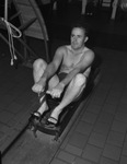 Young Men's Christian Association member C. T. Groce, one of the most active members, took a workout Tuesday to brace himself for the organizations Fall membership drive, is shown working out on the rowing machine