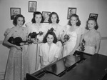 Five pupils of Marius Thor of Texas Wesleyan College. Left to right, Misses Annelle Elliott, Abbie Jane Sullivan, Elizabeth Haesly, Patsy Oswalt and Jeanne Collup. At the piano is their accompanist, Miss Ingrid Thor. Clipping: They'll Appear in Concerto Recital Today. Five pupils of Marius Thor, head of the violin department of Texas Wesleyan College, who will be presented in a concerto recital at 4 p.m. Sunday at the Junior Woman's Club. They are, left to right, Misses Annelle Elliott, Abbie Jane Sullivan, Elizabeth Haesly, Patsy Oswalt and Jeanne Collup. At the piano is their accompanist, Miss Ingrid Thor. Published morning edition September 28, 1941. Photograph showing six young women. Five of the women are standing in a row and one is sitting at a piano in front of them. The women who are standing are dressed in light colored dresses. They are each holding a violin. The woman who is seated is also wearing a light colored dress. On the wall behind them are framed, autographed photos of different men.