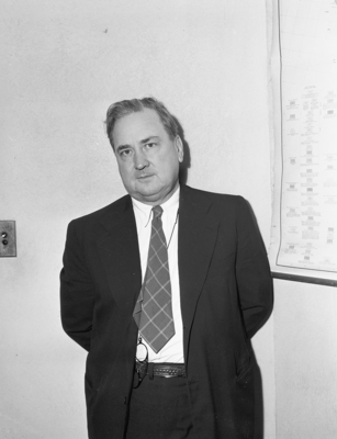 David Donoghue, consulting geologist for the Fort Worth, Texas Geological Society. He will inaugurate the society's Fall series of addresses. He is shown standing, wearing a suit and necktie.