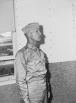 Brigadier General William Hood Simpson is the commander of Camp Wolters Infantry Replacement Center at Mineral Wells, Texas. He is being nominated by President Franklin D. Roosevelt for promotion to Major General. General Simpson is standing at attention, dressed in his military uniform. Published in Fort Worth Star-Telegram, morning edition, September 30, 1941.