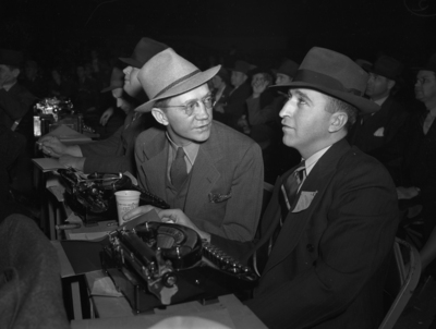 Suits (Clothing); Typewriters; Eyeglasses; Hats; Spectators; Neckties