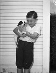 Fish Pond Rescue Scenes. Larry Turnage with puppy. Image associated with "Principals, Scene of Fish Pond Rescue," Star-Telegram Evening Edition October 2, 1941.
