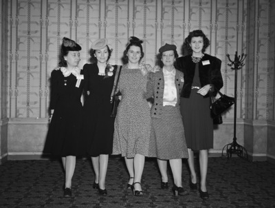 Dresses; Young Women's Christian Association; YWCA; Cook, Edna (Miss); Jones, Lorraine (Miss); Culbertson, Louise (Miss); Schell, Viola (Mrs.); Cowan, Mary Catherine (Miss); Conferences; Hotel Texas (Fort Worth, Tex.)
