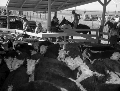 Cattle; Animals; Livestock; Animal auctions; Smith Brothers (Marfa, Tex.); Highland Hereford Association