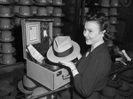 Fit for a monarch's head piece is this Stetson ermine beaver hat being offered by Washer Brothers. The price is $150, but it's virtually a life time buy. The hat, with its individual, hand-sewn leather carrying case, is being displayed here by Mrs. Ima Williams. Published in the Fort Worth Star-Telegram evening edition, October 6, 1941.