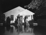 Mr. and Mrs. H. M. Hardin, 4800 Parrish Road, wading in the pool of water that submerged their front yard after the heavy rains Wednesday. The water surrounded the house and another residence Hardin is having built next door, where an automobile was marooned in the driveway. Some other homes on Parrish Road were accessible only from the rear because of the water. Image appeared in "Marooned on Parish Road," Star-Telegram Morning Edition October 2, 1941.