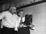 Beauties from the West at the World's Championship Rodeo in Madison Square Garden at New York City, starting Wednesday. Shown here are L. L. White (left) and his father, Leon White. They are viewing with pride fancy pair of cowboy boots made for Mayor La Guardia at the White boot and saddle shop, 2461 North Main Street, Fort Worth, Texas. Mayor will wear the boots when he leads opening parade of the Garden rodeo Wednesday. Published in the Fort Worth Star-Telegram evening edition, October 7, 1941.