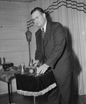 International Brotherhood of Magicians. Press Perry doing magic cups trick.