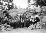 Trinity River Valley Exposition group is pictured here. The group (male and female) is standing at rock quarry at Huntsville, Texas.