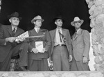 First-hand knowledge of the big lakes near Fort Worth was added to a store of information they have been gathering on a resources tour of the Trinity River Valley when members of a Lower Trinity Delegation visited here Thursday. Here, H. G. Pass (left), chairman of the Fort Worth Chamber of Commerce reception committee, points out highlights of the reservoirs and other projects to visitors. He is seen holding a pointing stick. From left to right, the visitors pictured are Bill Daniel of Liberty, Texas, M. A. Glasscock of Anahuac, Texas, and Pete Pressley of Cleveland, Texas.