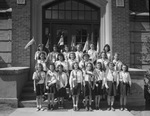 Saint Mary's Parochial School group. Front row, left to right,: Elvira Matthews, Patsy Gross, Joyce Singleton, Mary Agnes Weaver, Billie Sue Johnston, Lenore Ann Shaw, Doris Manning and Josephine Wise. Second row, Mary Elizabeth Stuart, Helen Rico, Marcella Hajek, Beverly Hartzell, Winifred Simpson and Lenora Mann. Third row, Dorothy Shean, Mary Louise Rohleder, Geraldine Coonrod, Dorothy Kerns, Mildred Williams and Dolores Arnold. Image appeared in "St. Mary's Pupils Add to Decorative Theme," Star-Telegram Morning Edition October 11, 1941. Flags of Latin-American countries held by students will be part of the decorative theme at the Catholic Columbus Day Fiesta Saturday afternoon and night at Pioneer Palace.
