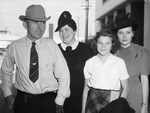State Fair at Dallas, Texas attendees Mr. and Mrs. J. E. Whatley of Groom, Texas. At the right is their daughter, Dardanella, and their niece, Wylafae Whatley. Mr. Whatley is wearing trousers, full sleeve shirt, a tie and a cowboy hat. Mrs. Whatley is wearing a dress and a hat. Dardanella is wearing a dress and Wylafe is wearing a skirt and blouse. Troy Whatley, son of Mr. and Mrs. J. E. Whatley is a winner for his steer. The family members are smiling over the youngster's victory. Published in the Fort Worth Star-Telegram morning edition, October 27, 1941.