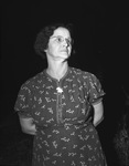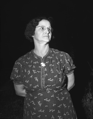 When the American Meat Institute awarded silver buttons to 41 persons in Fort Worth who have completed 25 years of service in the meat industry it was Mrs. Dora Groze who kept the women from being shut out. Mrs. Groze, an employee of Armour & Company, was the lone women to receive an award. She is shown wearing a dark color dress with a small birds pattern print. Published in The Fort Worth Star-Telegram Evening Edition October 15, 1941.