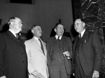 Interstate Oil Compact Commission meeting attendees (left to right) State Senator Tom Anglin, Oklahoma City, Oklahoma; E. B. Reeser, Tulsa, Oklahoma; William Armstrong and J. C. Hunter, Abilene, Texas. Published in The Fort Worth Star-Telegram Morning Edition October 16, 1941.