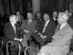 Interstate Oil Compact Commission meeting attendees at the Blackstone Hotel(left to right) George A. Hill Junior, Houston, Texas; F. J. Adams, Fort Worth, Texas; L. P. Garrett, Houston, Texas; and P. O. Settle, attorney for the Gulf offices here. Published in The Fort Worth Star-Telegram Evening Edition October 16, 1941.