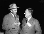 Fort Worth Chamber of Commerce oil and gas committee banquet attendees Joe S. Bridwell (left), a Wichita Falls, Texas oil man and Harry C. Wiess (right), president of Humble Oil and Refining Company, Houston, Texas. The banquet was held at the River Crest Country Club for members and visitors of the Interstate Oil Compact Commission. Mr. Bridwell is one of the country's leading cattlemen as well as being one of the largest oil operators among the independent group. Published in The Fort Worth Star-Telegram Evening Edition October 17, 1941.