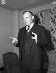 Texas Governor Coke Stephenson at a Texas Safety Association regional traffic safety conference at Hotel Texas. Governor Stephenson is shown dressed in a suit. Published in The Fort Worth Star-Telegram Morning Edition October 17, 1941.