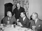 Left to right: Robert H. Hinckley, assistant secretary of commerce; Colonel Lucius Clay, assistant to Civil Aeronautics Administration administrator; Amon Carter and, standing, L. C. Elliott, regional Civil Aeronautics Administration manager.