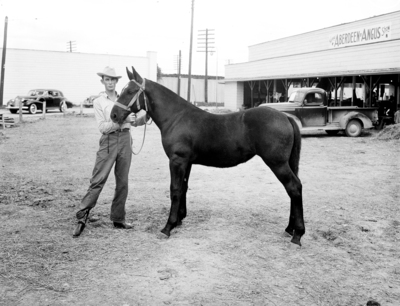 Dono Terry, Roby, Texas shown with his champion colt at the State Fair of Texas youth livestock show. Published in The Fort Worth Star-Telegram Morning Edition October 17, 1941.