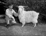 Guy Allen with champion C type yearling at the Angora goat show at the State Fair of Texas.