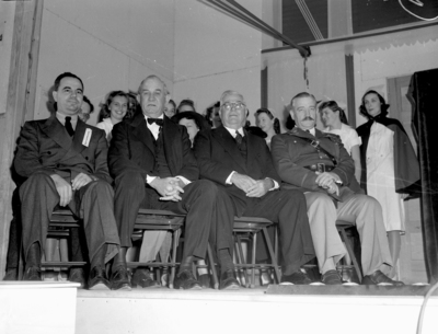 Attending the dedication of Sheppard Field in Wichita Falls, Texas are (left to right) Ed Gossett, United States Senator Tom Connally, Mark McMahon and Colonel Edward C. Black.