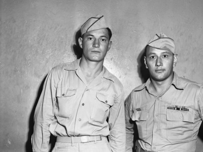 M. H. Butcher and R. D. Corder, former Star-Telegram linotype operators, in Army uniforms