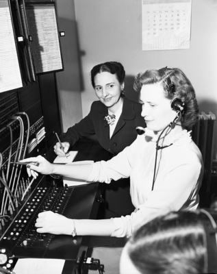 American Cancer Crusade - Fort Worth Chapter. Oleta Knowles and Eva Tannehill, PBX operators who will donate their services Sunday afternoon to a telephone campaign.