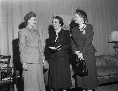 Mmes. W. J. Darby, Mary Ferguson and John H. Hall, left to right, are three of the chairmen named for committees planning the Pan American Round Tables of Texas meeting. Mrs. Darby is chairman of the banquet committee; Mrs. Ferguson, finance, and Mrs. Hall, luncheon. Published in Fort Worth Star-Telegram, evening edition March 26, 1951.