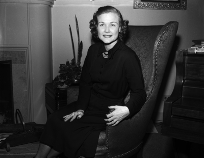 Bust shot of Mrs. K. J. Edwards Sr., of Gainsville, she is the wife of agricultural adviser to King Ibn Saud of Saudi Arabia. She was one of the few American women ever to visit the King's harem.