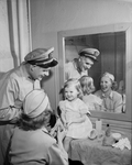 Before the curtain rose at the Majestic Theater, Rusty Lane and Sara Anderson coaxed a smile out of their 2-year-old daughter, Sara, then took their parts in "Mister Roberts." Even little Sara, who the night before was fighting 103 degrees of fever, seemed to know "the show must go on". Published in Fort Worth Star-Telegram, morning edition March 22, 1951.