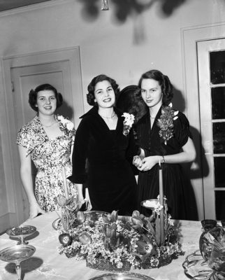 Pictured here is Miss Donna Kastle, left; Miss Judy Davis, center; and Miss Lois Ann Ward, right, were honored at a reception and tea in the home of Dr. and Mrs. Tom Rumph.