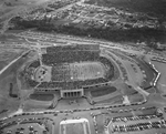 Evangelist Billy Graham, who has set attendance records throughout the country, set a new one for religious meetings in Fort Worth in Amon Carter stadium when an estimated 36,000 heard his final talk. The crowd began arriving four hours before his sermon and left stress for blocks around the stadium lined with cars. An hour and a half after the meeting closed, cars still were filing from the stadium area. White dots on the field are pillows supplied by the revival committee for people to sit on during the service. Published in Fort Worth Star-Telegram, morning edition March 26, 1951.